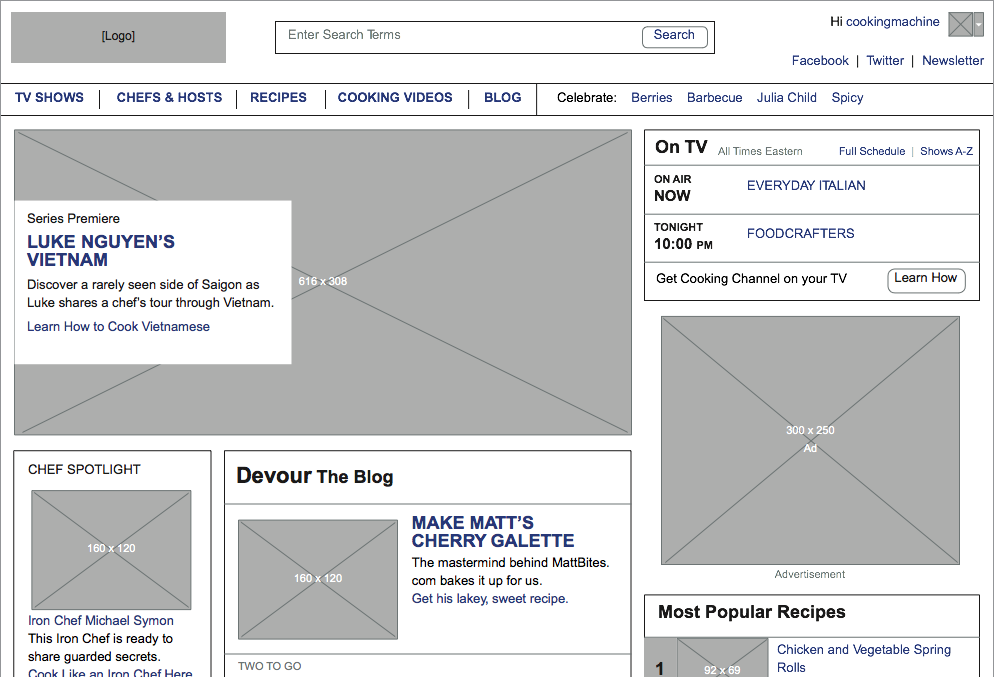 Cooking Channel is dedicated to people who love food. Owned by Scripps Networks (who also owns Food Network) the Cooking Channel is intended to feature more cooking and offer a wider array of the culinary palette than its sister network. When this website was created, I was the team leader on the project. I worked with an agency to construct the overall architecture of the new site and helped direct the visual design. As part of my work on the project, I created a new interaction design for photo galleries that was later adopted across all the Scripps Networks family of websites, including HGTV.com and FoodNetwork.com.