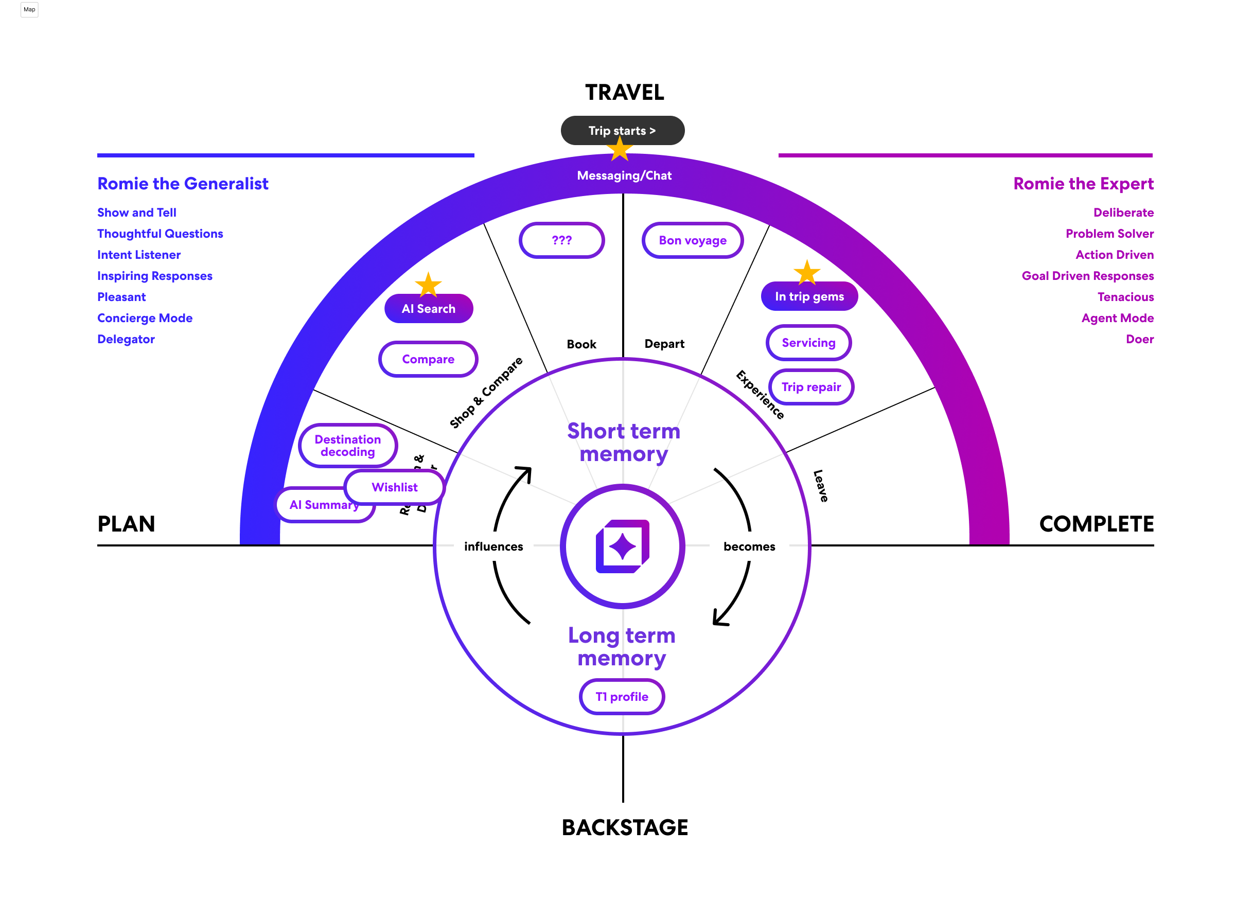 Key learning: where a product lives must match the user’s readiness for brand interaction in that space. The messaging integration worked technically, but the deeper insight was that ambient AI companions require a trust runway — people need to discover and opt into that kind of relationship, not have it introduced into their most personal threads. Future iterations would focus on earning presence in those contexts gradually, starting from the Expedia app and extending outward as users invite Romie into more of their planning life.